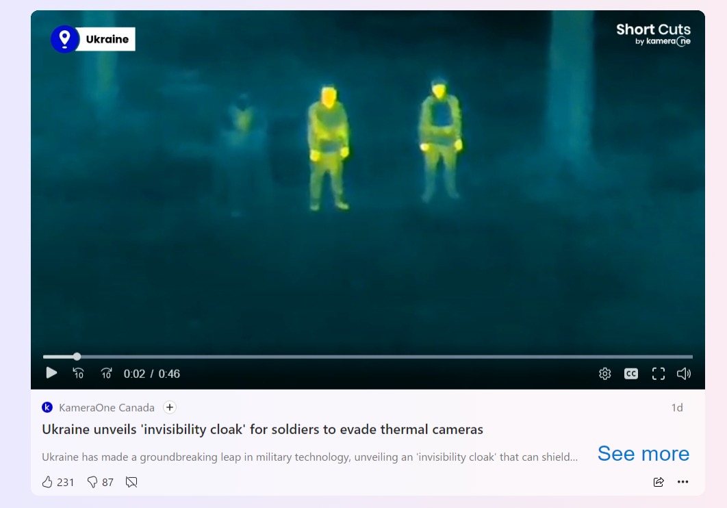 HERE, OUR TRUE UKRAINIAN GOOD WARRIORS ARE DOING THE BEST TO DEVELOP NEW WAR TOOLS TO WIN THE WAR ON TRUTH. LET'S PRAY FOR THEIR SUCCESS ON THE BATTLEFIELD WITH THEIR NEW INVISIBLE CLOAK THAT WILL ALLOW THEM TO SNEAK UP AND DESTROY EVIL, CORRUPT RUSSIA'S MONSTER PUTIN'S DARK SIDE AMBITIONS. CANADA IS UNITED WITH UKRAINE TO SUPPORT UNTIL THE END OF